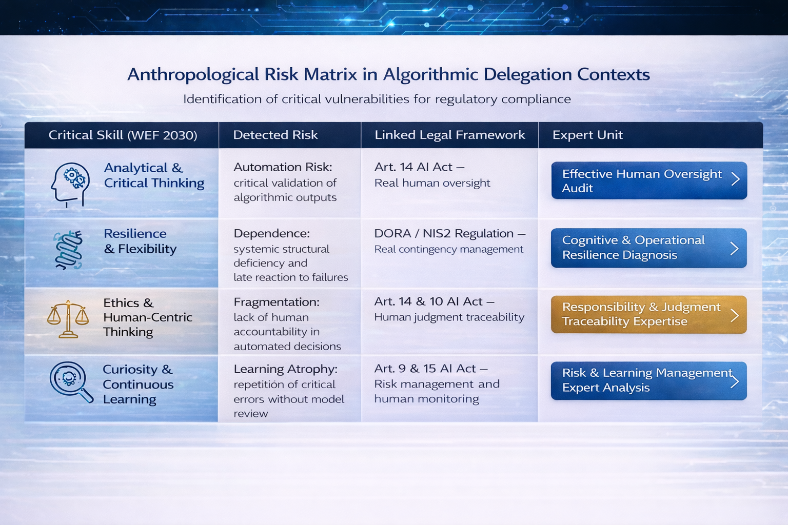 - Increasing vulnerability before regulatory frameworks that demand effective human oversight.