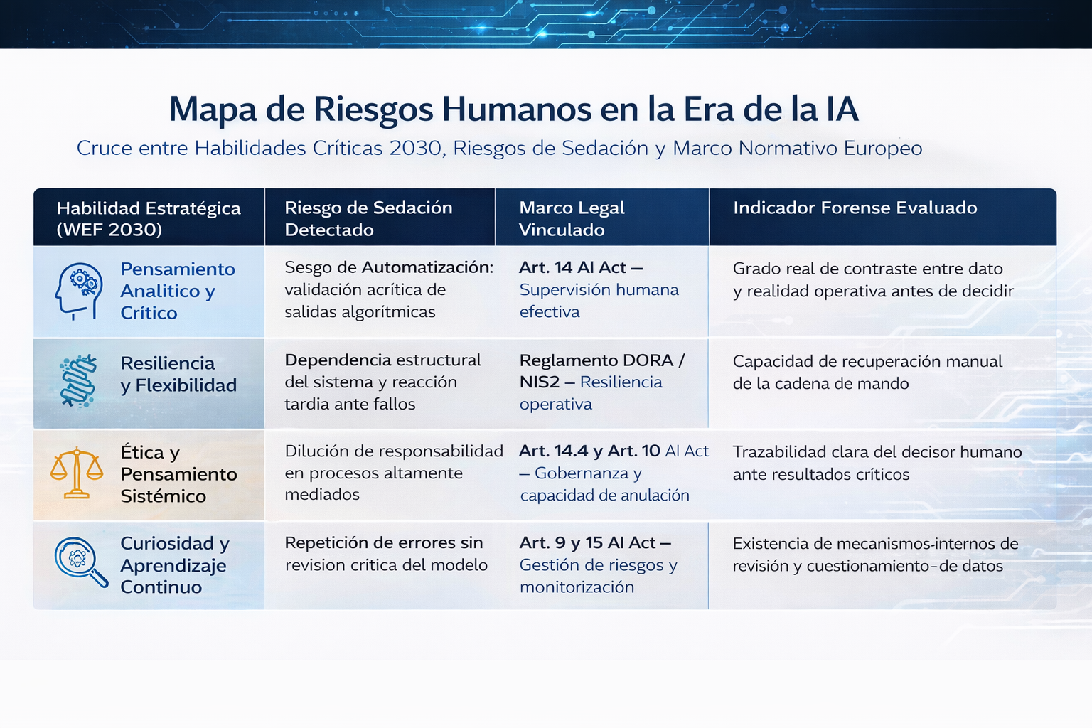 ANTROPOLOGIC translates critical strategic skills—such as analytical thinking, resilience, ethics, and learning—into evaluable variables of operational and regulatory risk.